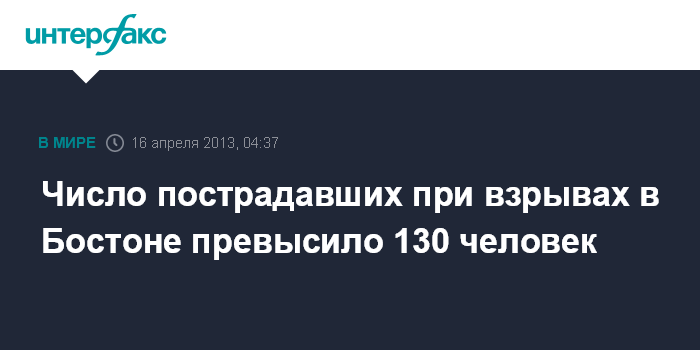 Как отмечает Би-би-си, полиция Бостона подтвердила гибель только двух человек, однако другие официальные лица предполагают, что количество погибших может достигать нескольких десятков.