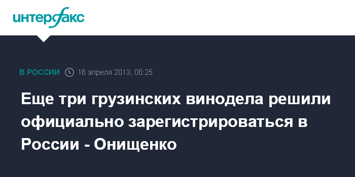 "Мы считаем, что в настоящее время достаточное число грузинских предприятий может продолжить работу по получению доступа на российский рынок. Для грузинского винного бизнеса есть большие возможности для эволюционного возвращения на российский рынок", - сказал Г.Онищенко.