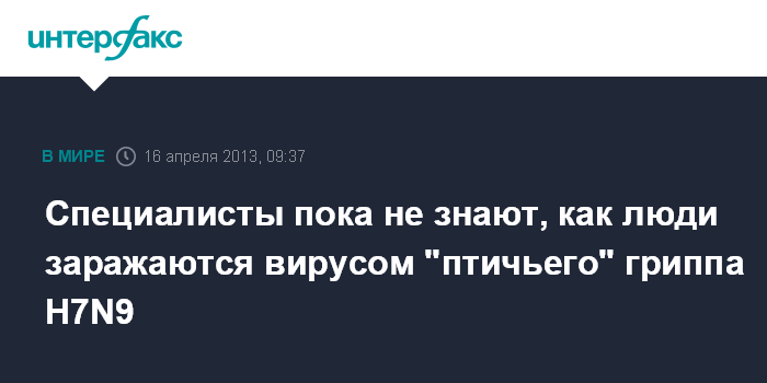 "По данным неофициальных источников, выделенные образцы H7N9 являются новым рекомбинантным штаммом вируса гриппа. Новый вирус (А/Н7N9) имеет гены вируса гриппа H2N9 из Южной Кореи. Кроме того, есть основания считать, что в прошлом имел место случай "обмена" генами с вирусами гриппа H11N9 и с группой вирусов гриппа H7. Все перечисленные разновидности вирусов относятся к "птичьим" видам, которые не вызывали клинических проявлений у человека", - говорится в сообщении ведомства.