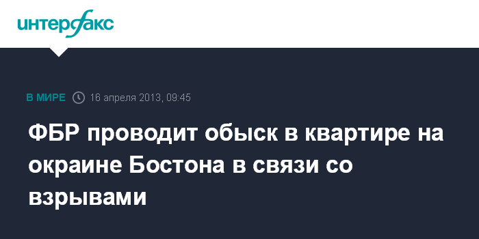 Вашингтон. 16 апреля. INTERFAX.RU - Сотрудники ФБР обыскивают одну из квартир в окрестностях Бостона в рамках расследования причины взрывов, произошедших в ходе марафона, сообщает во вторник местное телевидение.