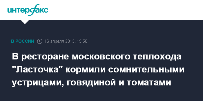 В ресторане московского теплохода "Ласточка" кормили сомнительными устрицами, говядиной и томатами