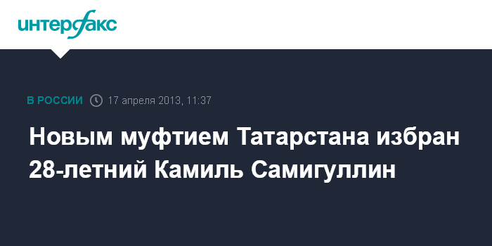 Казань. 17 апреля. INTERFAX.RU - Делегаты VI внеочередного съезда мусульман Татарстана в среду в Казани выбрали нового муфтия, председателя Духовного управления мусульман (ДУМ) республики, им стал 28-летний Камиль Самигуллин.