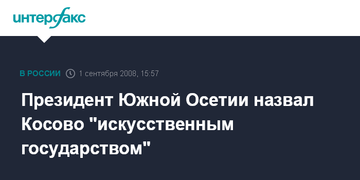 Президент Южной Осетии назвал Косово "искусственным государством"