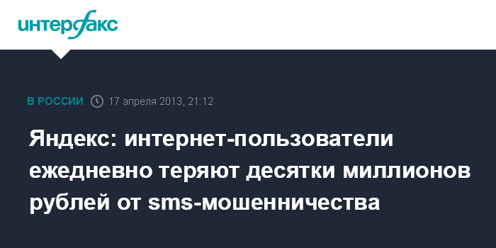 Яндекс: интернет-пользователи ежедневно теряют десятки миллионов рублей от sms-мошенничества