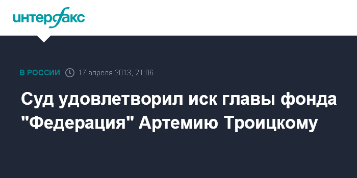 Суд удовлетворил иск главы фонда "Федерация" Артемию Троицкому