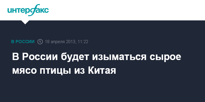 Москва. 18 апреля. INTERFAX.RU - Российская санитарная служба будет изымать сырое мясо птицы из Китая из-за риска ввоза опасного гриппа H7N9, сообщил "Интерфаксу" руководитель Роспотребнадзора, главный государственный санитарный врач РФ Геннадий Онищенко.