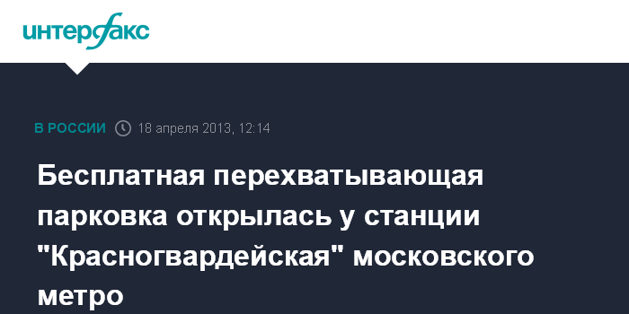 Москва. 18 апреля. INTERFAX.RU- Рядом со станцией "Красногвардейская" Замоскворецкой линии Московского метрополитена открылась перехватывающая парковка на 528 машиномест, сообщили "Интерфаксу" в пресс-службе метро в четверг.