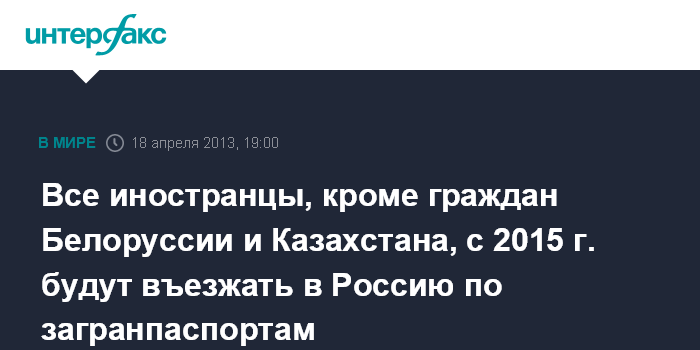 Все иностранцы, кроме граждан Белоруссии и Казахстана, с 2015 г. будут въезжать в Россию по загранпаспортам