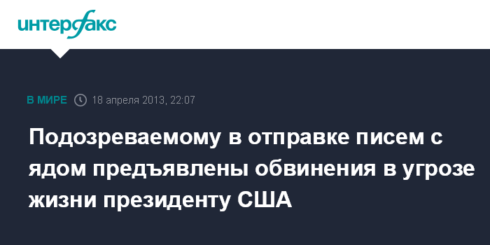 Подозреваемому в отправке писем с ядом предъявлены обвинения в угрозе жизни президенту США