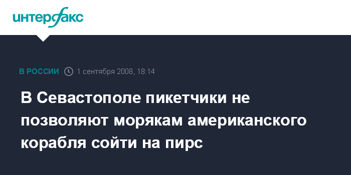 Москва. 1 сентября. INTERFAX.RU - Около 20 пикетчиков нескольких политических партий и пророссийских общественных организаций продолжают в понедельник пикетировать Севастопольский морской торговый порт, где утром пришвартовался корабль береговой охраны ВМС США "Даллас".