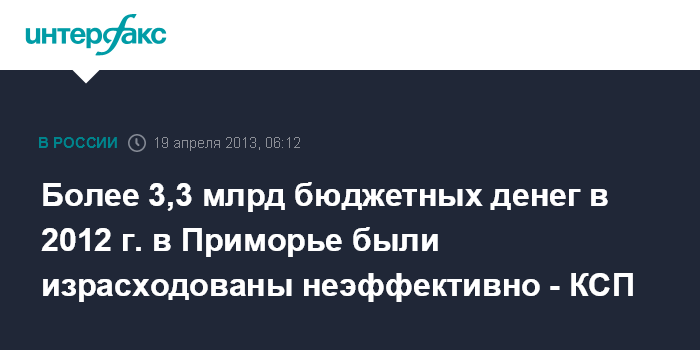 Более 3,3 млрд бюджетных денег в 2012 г. в Приморье были израсходованы неэффективно - КСП