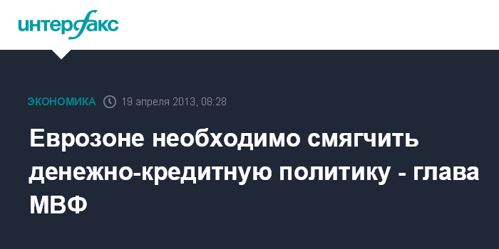 Еврозоне необходимо смягчить денежно-кредитную политику - глава МВФ
