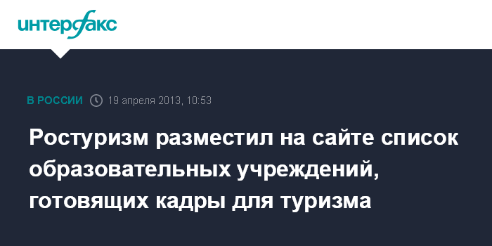 Москва. 19 апреля. INTERFAX.RU - На сайте Ростуризма опубликована информация об образовательных учреждениях, готовящих кадры для сферы туризма и гостеприимства.