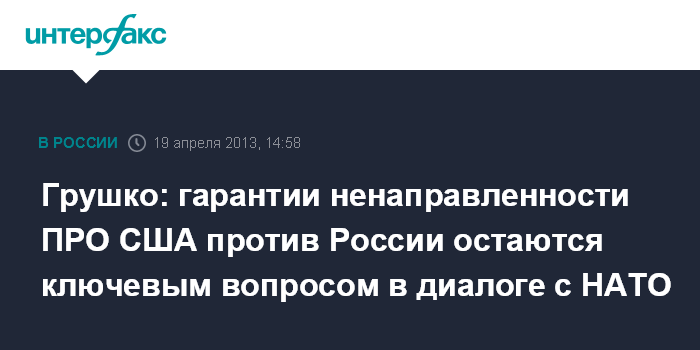 Грушко: гарантии ненаправленности ПРО США против России остаются ключевым вопросом в диалоге с НАТО