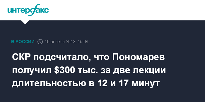 СКР подсчитало, что Пономарев получил $300 тыс. за две лекции длительностью в 12 и 17 минут