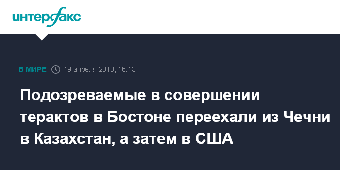 Подозреваемые в совершении терактов в Бостоне переехали из Чечни в Казахстан, а затем в США