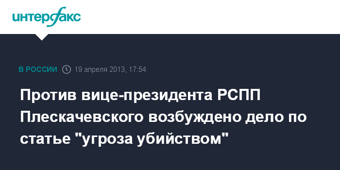 Против вице-президента РСПП Плескачевского возбуждено дело по статье "угроза убийством"