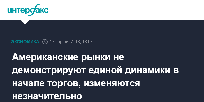 19 апреля. FINMARKET.RU - Торги в пятницу фондовые индексы США начали незначительными разнонаправленными изменениями после выхода квартальных отчетов ряда крупных компаний, отмечает Bloomberg.