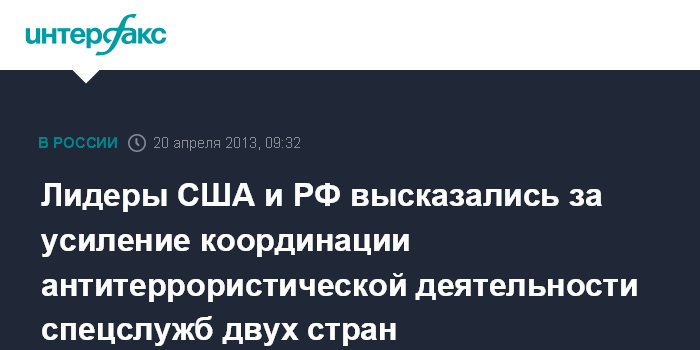 Лидеры США и РФ высказались за усиление координации антитеррористической деятельности спецслужб двух стран