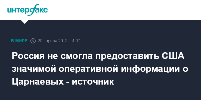 "Поскольку братья Царнаевы не проживали в России, какой-либо оперативно-значимой информацией наши спецслужбы своим зарубежным партнерам предоставить не могли", - сообщил "Интерфаксу" в субботу источник в российских спецслужбах.