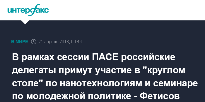В рамках сессии ПАСЕ российские делегаты примут участие в "круглом столе" по нанотехнологиям и семинаре по молодежной политике - Фетисов
