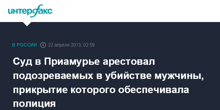 Хабаровск. 22 апреля. ИНТЕРФАКС-ДАЛЬНИЙ ВОСТОК - Двое подозреваемых в убийстве 30-летнего мужчины, застреленного на глазах у полиции в Благовещенске, заключены под стражу, сообщает Следственное управление СКР по Амурской области.