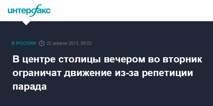 Москва. 22 апреля. INTERFAX.RU - Движение в центре Москвы будет ограничено во вторник вечером в связи с проведением репетиции Парада Победы на Красной площади, сообщили "Интерфаксу" в пресс-службе управления ГИБДД Москвы в понедельник.