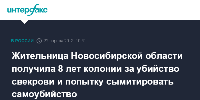Новосибирск. 22 апреля. INTERFAX.RU - Новосибирский областной суд признал местную жительницу виновной в убийстве собственной свекрови, сообщает пресс-служба облпрокуратуры в понедельник.