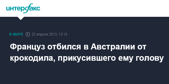 Сидней. 22 апреля. INTERFAX.RU - Французский рыбак в Австралии чудом спасся из пасти крокодила, отбившись от земноводного кулаками, сообщила в понедельник австралийская телерадиокомпания ABC.