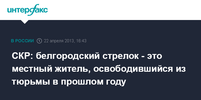 Москва. 22 апреля. INTERFAX.RU - Установлена личность преступника, который расстрелял людей в Белгороде, сообщили "Интерфаксу" в Следственном комитете РФ.