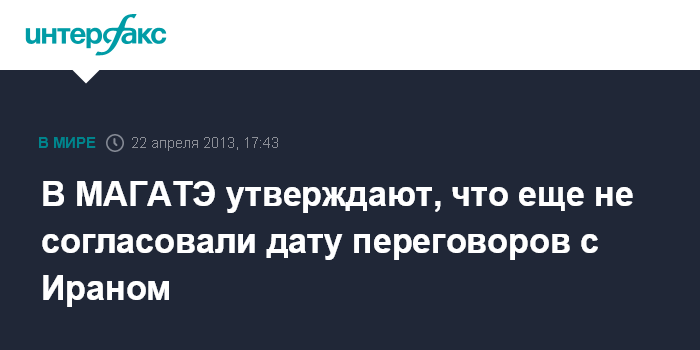 Вена. 22 апреля. INTERFAX.RU - Дата очередного раунда переговоров между Ираном и МАГАТЭ еще не согласована, объявили в понедельник в этом агентстве.