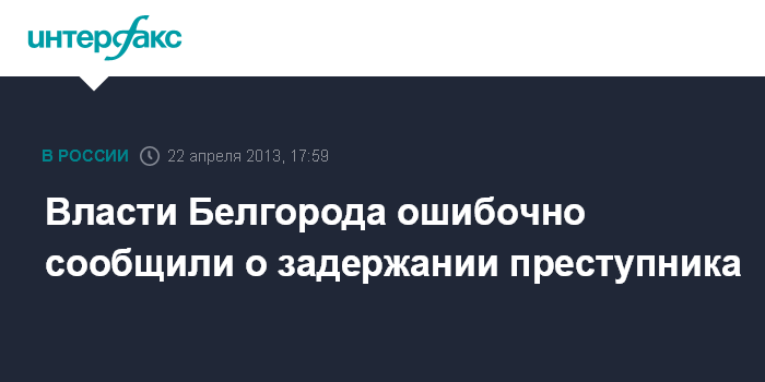 Власти Белгорода ошибочно сообщили о задержании преступника