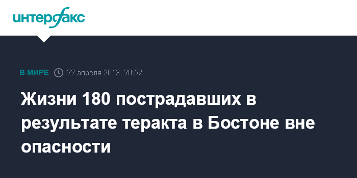 Жизни 180 пострадавших в результате теракта в Бостоне вне опасности