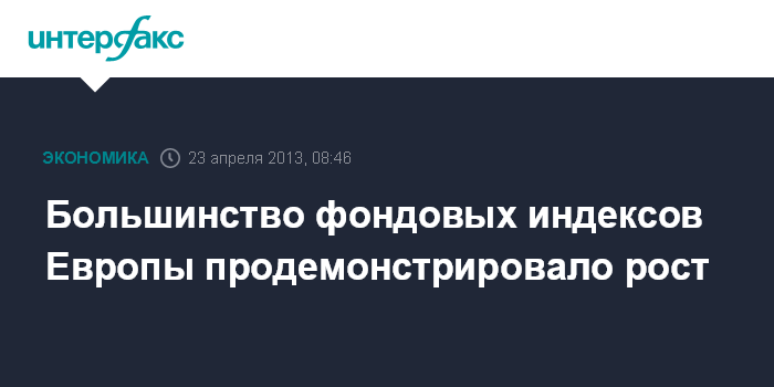 23 апреля. FINMARKET.RU - Торги в понедельник большинство фондовых индексов Европы завершило ростом благодаря ряду позитивных факторов, хотя в конце торговой сессии рынки замедлили подъем из-за слабой статистики по рынку жилья США, сообщил Bloomberg. Повышение продемонстрировали 11 из 18 основных фондовых индексов стран Западной Европы.