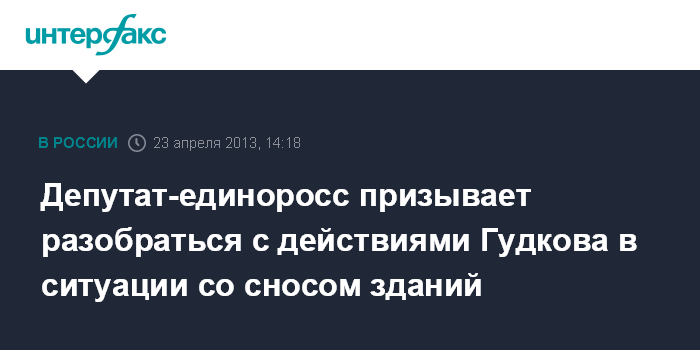 Депутат-единоросс призывает разобраться с действиями Гудкова в ситуации со сносом зданий