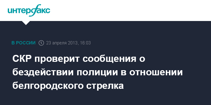 СКР проверит сообщения о бездействии полиции в отношении белгородского стрелка