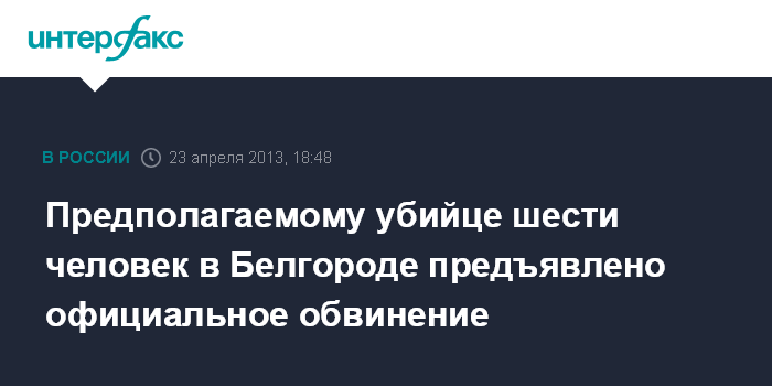 Предполагаемому убийце шести человек в Белгороде предъявлено официальное обвинение
