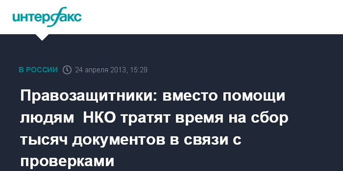 Москва. 24 апреля. INTEFAX.RU - Представители правозащитных организаций сочли чрезмерным количество проверок НКО со стороны госорганов.