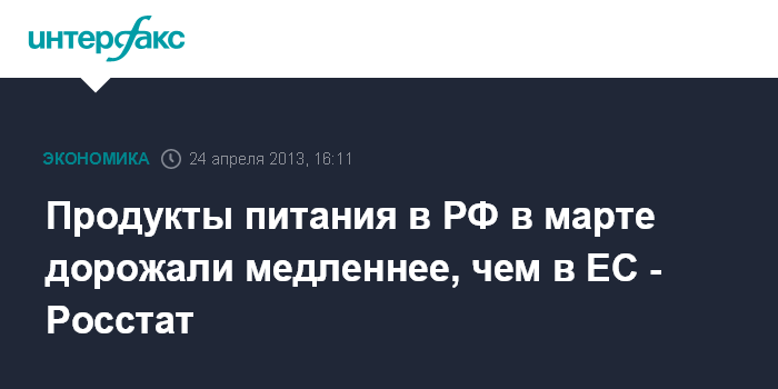 Продукты питания в РФ в марте дорожали медленнее, чем в ЕС - Росстат