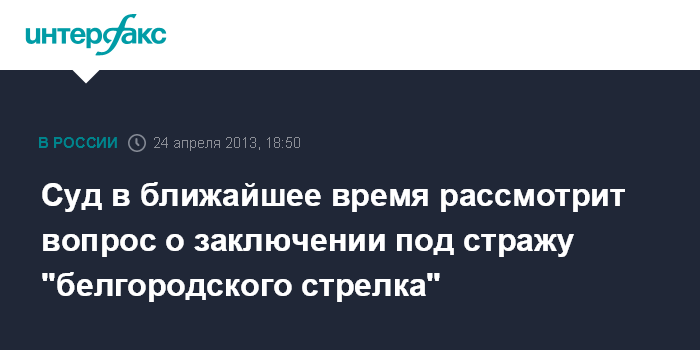 Белгород. 24 апреля. INTERFAX.RU - Свердловский районный суд Белгорода в ближайшее время приступит к рассмотрению ходатайства об избрании меры пресечения в отношении "белгородского стрелка" Сергея Помазуна, сообщили "Интерфаксу" в пресс-службе Белгородского областного суда.