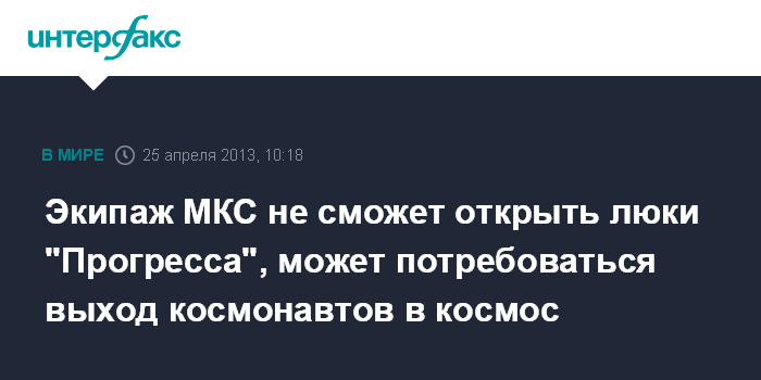 Экипаж МКС не сможет открыть люки "Прогресса", может потребоваться выход космонавтов в космос
