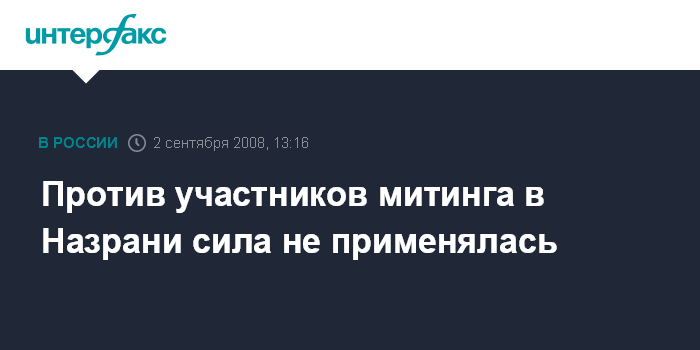 Москва. 2 сентября. INTERFAX.RU - В прокуратуре Ингушетии опровергают сообщения о применении силы в отношении участников митинга в Назрани.