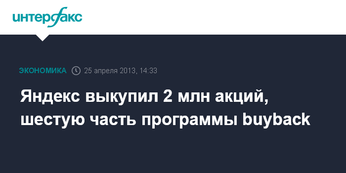 Яндекс выкупил 2 млн акций, шестую часть программы buyback