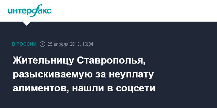 Ставрополь. 25 апреля. INTERFAX.RU - Приставы в Ставропольском крае нашли в одной из социальных сетей женщину, ранее объявленную в розыск за неуплату алиментов в пользу своей дочери, сообщает пресс-служба УФССП по Ставропольскому краю в четверг.