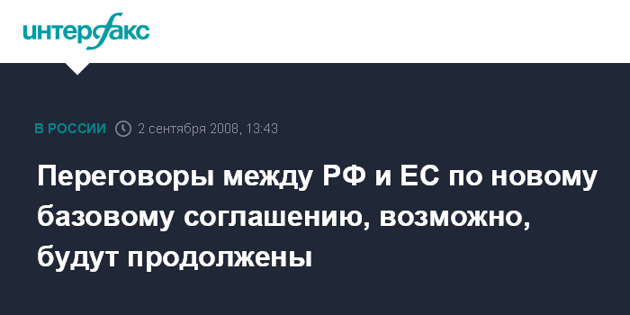 Москва. 2 сентября. INTERFAX.RU - Постпред России при ЕС Владимир Чижов не исключил, что переговоры между РФ и Евросоюзом по новому базовому соглашению будут продолжены.