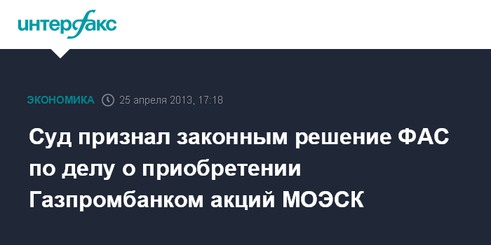 Суд признал законным решение ФАС по делу о приобретении Газпромбанком акций МОЭСК