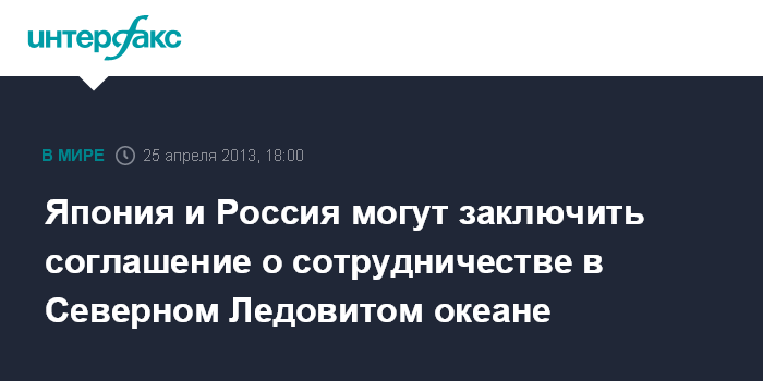 Токио. 25 апреля. INTERFAX.RU - Силы самообороны Японии и военно-морской флот России выразили готовность заключить соглашение в сфере морской безопасности в Северном Ледовитом океане, сообщает в четверг японское издание Yomiuri Shimbun со ссылкой на неназванные правительственные источники.