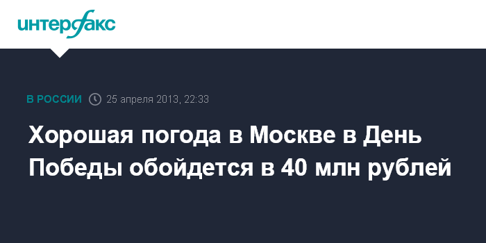 Хорошая погода в Москве в День Победы обойдется в 40 млн рублей
