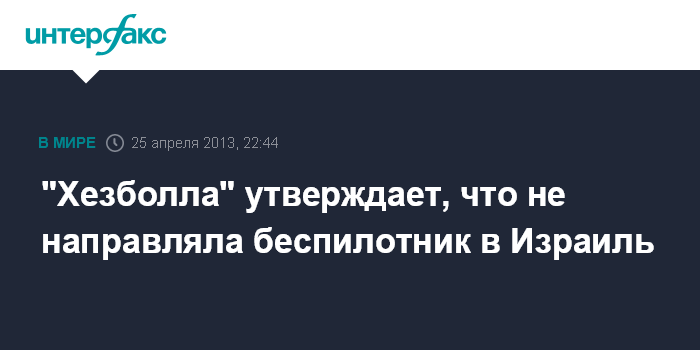Бейрут. 25 апреля. INTERFAX.RU - Ливанское радикальное движение "Хезболла" отрицает, что направляло беспилотник в воздушное пространство Израиля, сообщило AP в четверг.