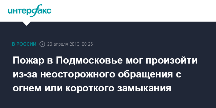 Пожар в Подмосковье мог произойти из-за неосторожного обращения с огнем или короткого замыкания